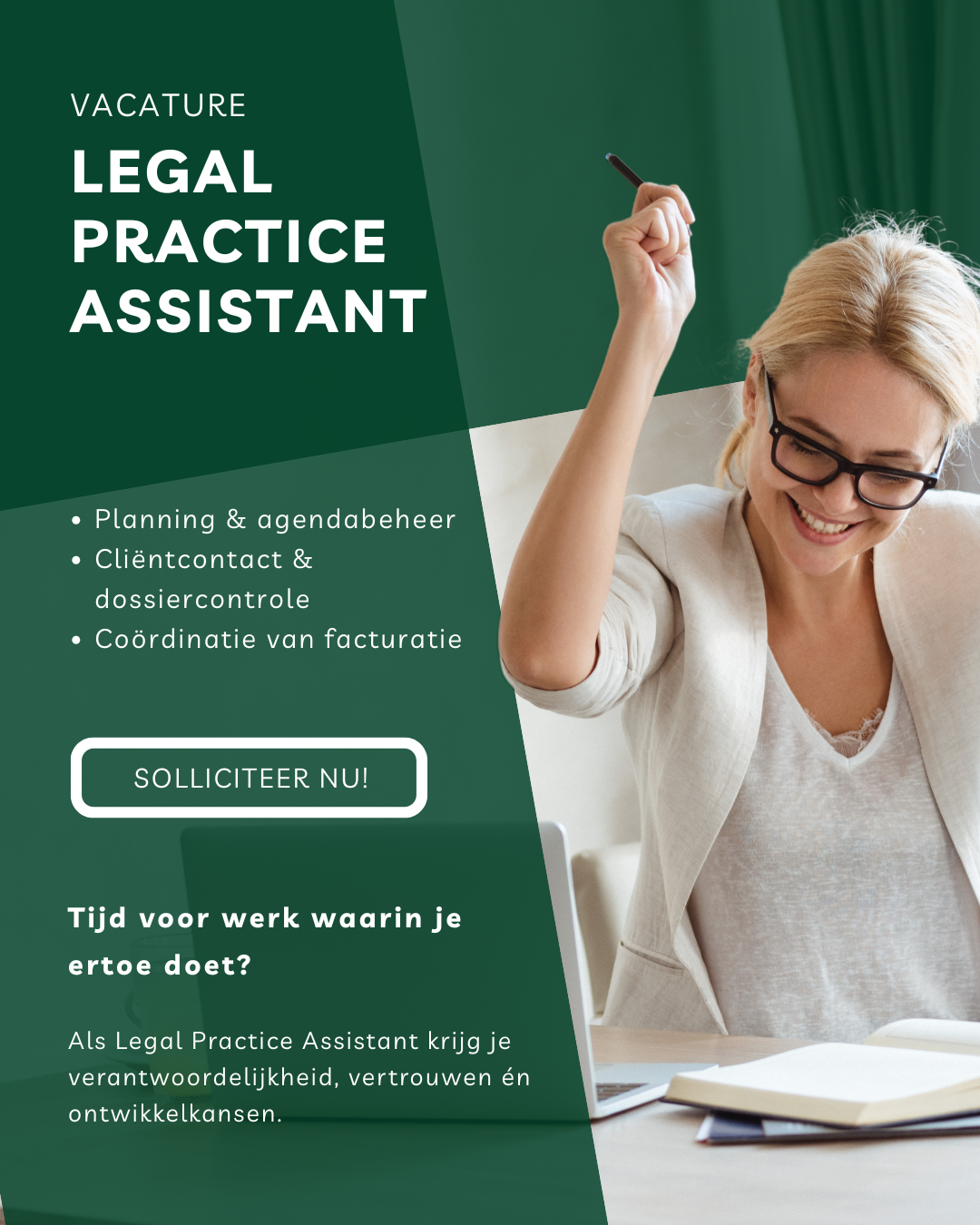Hoe vind je een Billing Assistant die niet alleen goed is met cijfers, maar ook soepel samenwerkt met juridische teams? Dit internationale advocatenkantoor op de Zuidas stapte af van de traditionele finance-vacature en koos voor een gestylde job marketing campagne. Met meerdere creatives, een landingspagina in hun eigen branding en een korte funnel met gerichte kwalificatievragen leverde de campagne binnen negen dagen genoeg gekwalificeerde leads op om de advertenties uit te zetten en met de beste kandidaten in gesprek te gaan, zonder de hoge fee-structuren van traditionele recruitmentbureaus.